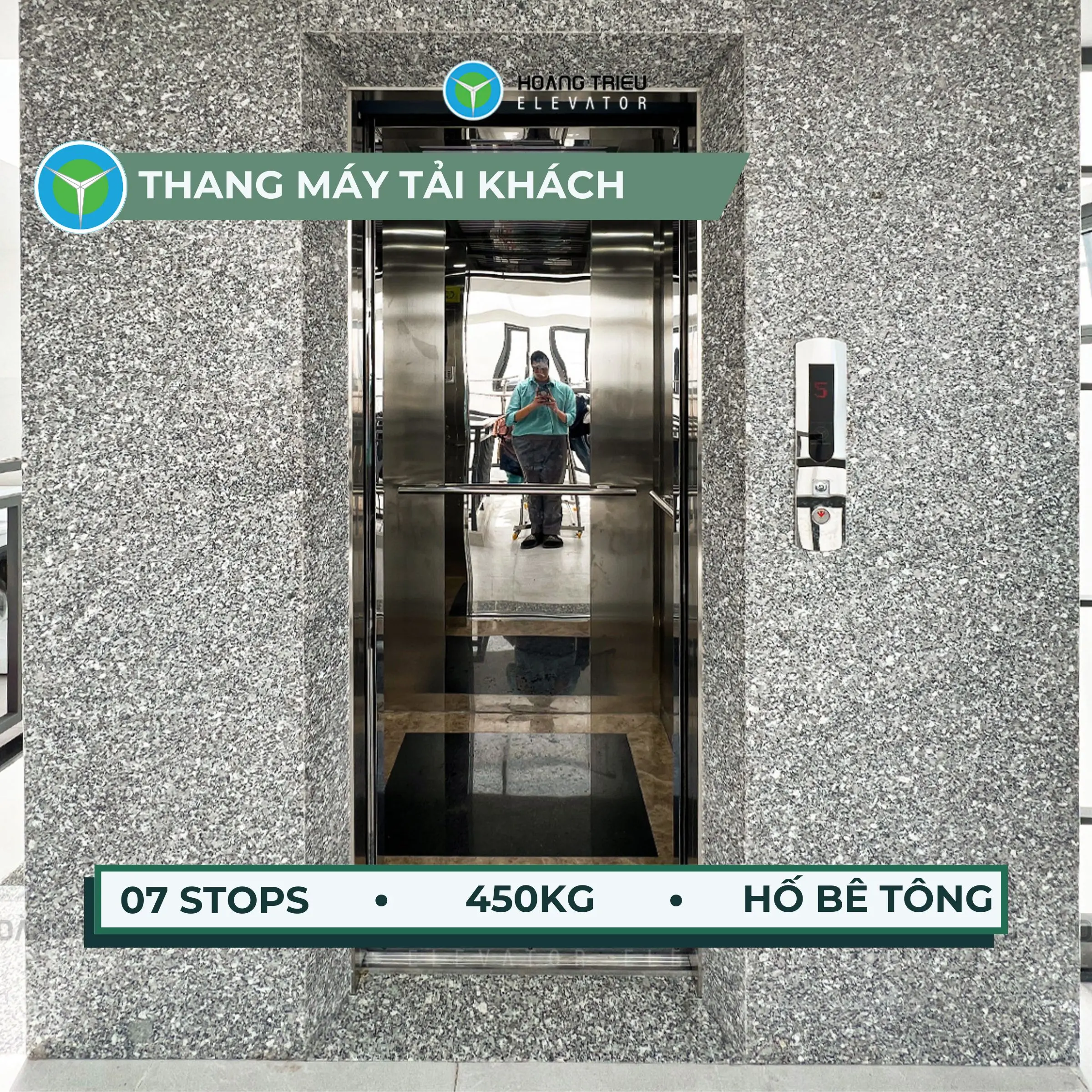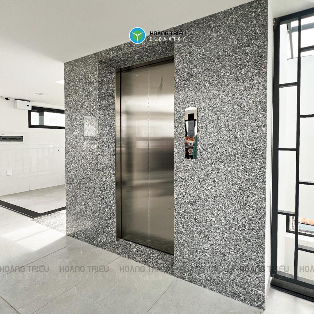 Lắp đặt thang máy Tải Khách inox trắng, cửa tim, 450kg cho nhà phố tại Quận 12. An toàn, sang trọng, dịch vụ chuyên nghiệp từ Hoàng Triều.